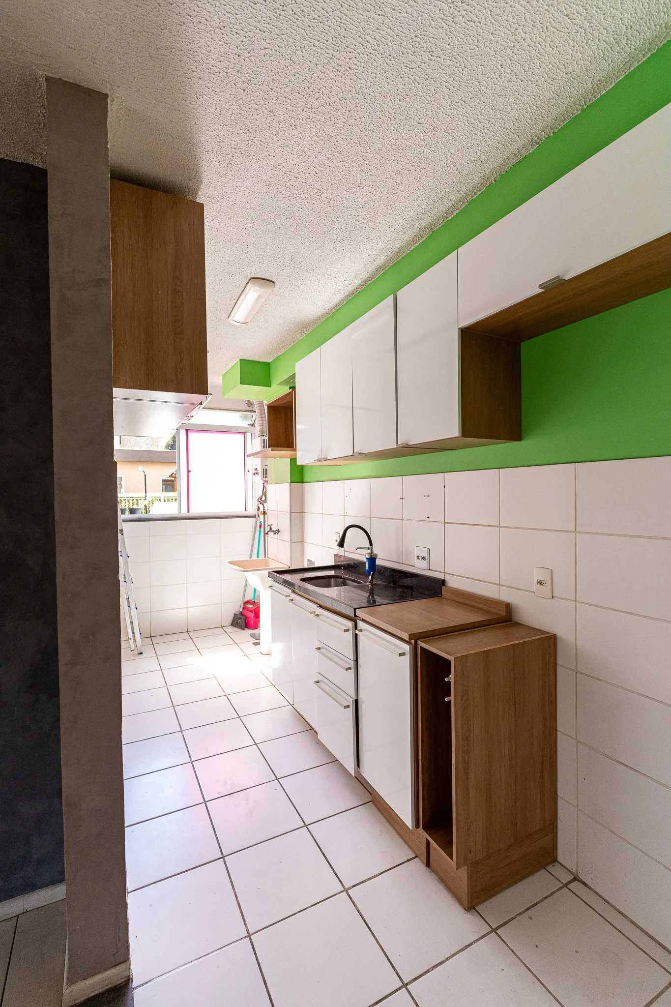 Já equipado com móveis planejados na cozinha, aquecedor de gás, ar-condicionado no quarto (recém-higienizado) e ventiladores de teto (na sala e em um dos quartos), oferece conforto desde o primeiro momento.